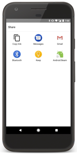 }这将显示一个对话框,其中包含响应传递给 createChooser() 方法的 Intent 的应用列表,并且将提供的文本用作对话框标题。